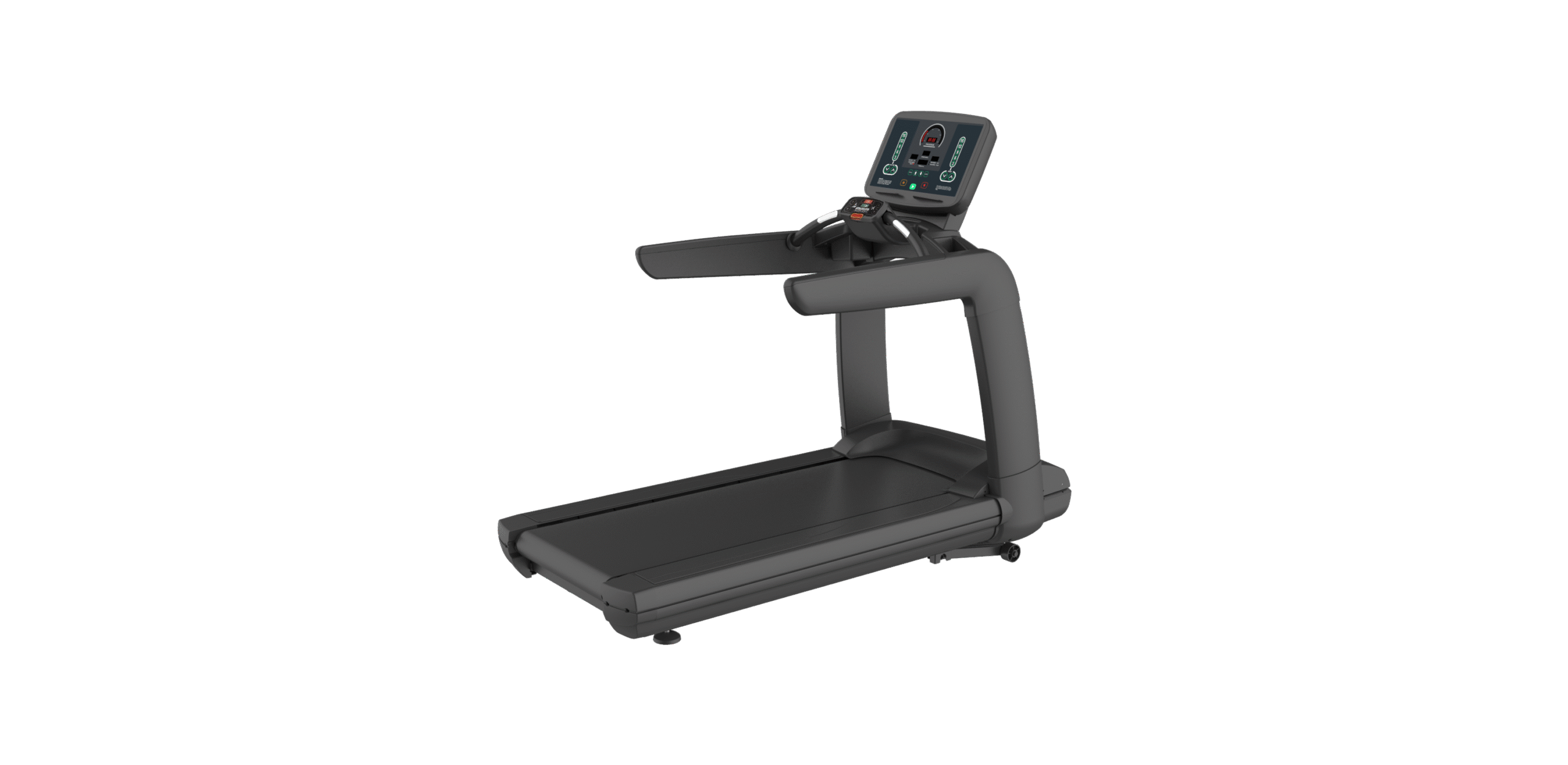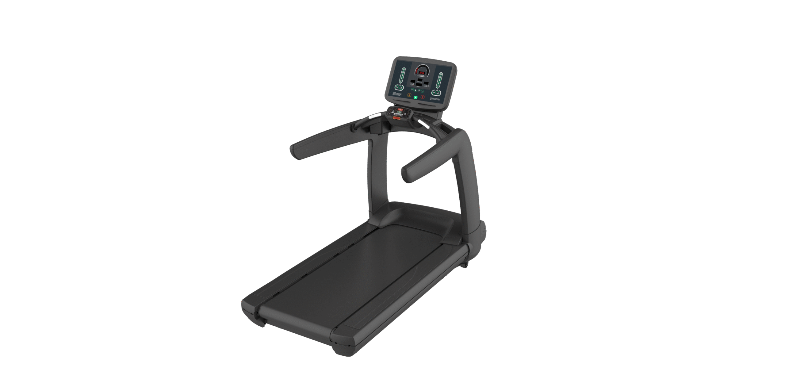 Equipped with a small handrail console for easy access to basic controls during a workout.